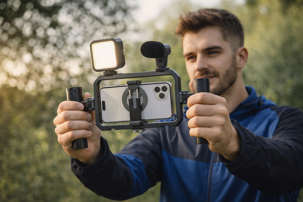 I just bought an iPhone 17 Pro and tested this video cage with it, and I have to say it made me feel like a professional videographer 😳🤣.
